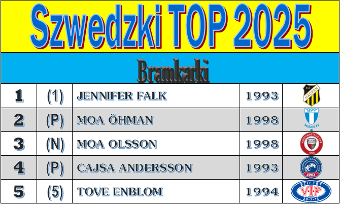 Rankingowe podium uzupełniają dwie inne zawodniczki rodzimej ligi, które – co ciekawe – łączy zdecydowanie więcej, niż na pierwszy rzut oka moglibyśmy przypuszczać. Przedstawicielki tego samego rocznika, do tego imienniczki i żadnej z nich absolutnie nie da się zaklasyfikować do grona cudownych dzieci szwedzkiego futbolu. Moa Öhman oraz Moa Olsson w obecnym miejscu znalazły się przede wszystkim dzięki tytanicznej pracy, konsekwencji w działaniu, a także zaufaniu, którym obdarzyli je kolejni trenerzy. I choć ta pierwsza w poszukiwaniu swojej drogi postanowiła kursować między Północą i Południem, a druga przez cały czas pozostawała wierna Kristianstad, to efekt ich wieloletniej podróży okazał się zaskakująco podobny. Wszak dziś już nikt nie zamierza kwestionować ich pierwszoligowej jakości, a i temat debiutu w kadrze Tony’ego Gustavssona w przypadku tego duetu zdaje się być jak najbardziej logiczną konsekwencją ich bramkarskiego rozwoju. Na kolejnym miejscu mamy strzelczynię jednego z najbardziej efektownych goli w ubiegłorocznej, ligowej kampanii, choć niestety w utrzymaniu Linköping na poziomie ekstraklasy nie pomogło ani to trafienie, ani też wiele ważnych interwencji Cajsy Andersson. W całkowitej degrengoladzie zasłużonego klubu z Östergötland doświadczona golkiperka uczestniczyła jednak chyba w najmniejszym stopniu i jeśli w LFC zamierzają wskazywać winnych gigantycznej klęski, to akurat między słupkami nie bardzo mają czego w tym temacie szukać. Zestawienie zamyka nam regularnie występująca w najlepszym zespole norweskiej Toppserien Tove Enblom, która jako jedyna z tego grona dostąpiła zaszczytu posmakowania fazy ligowej piłkarskiej Ligi Mistrzyń, a w wyjazdowym starciu z Romą jak najbardziej słusznie została okrzyknięta jedną z autorek niezwykle prestiżowego zwycięstwa Vålerengi nad faworyzowanym rywalem.